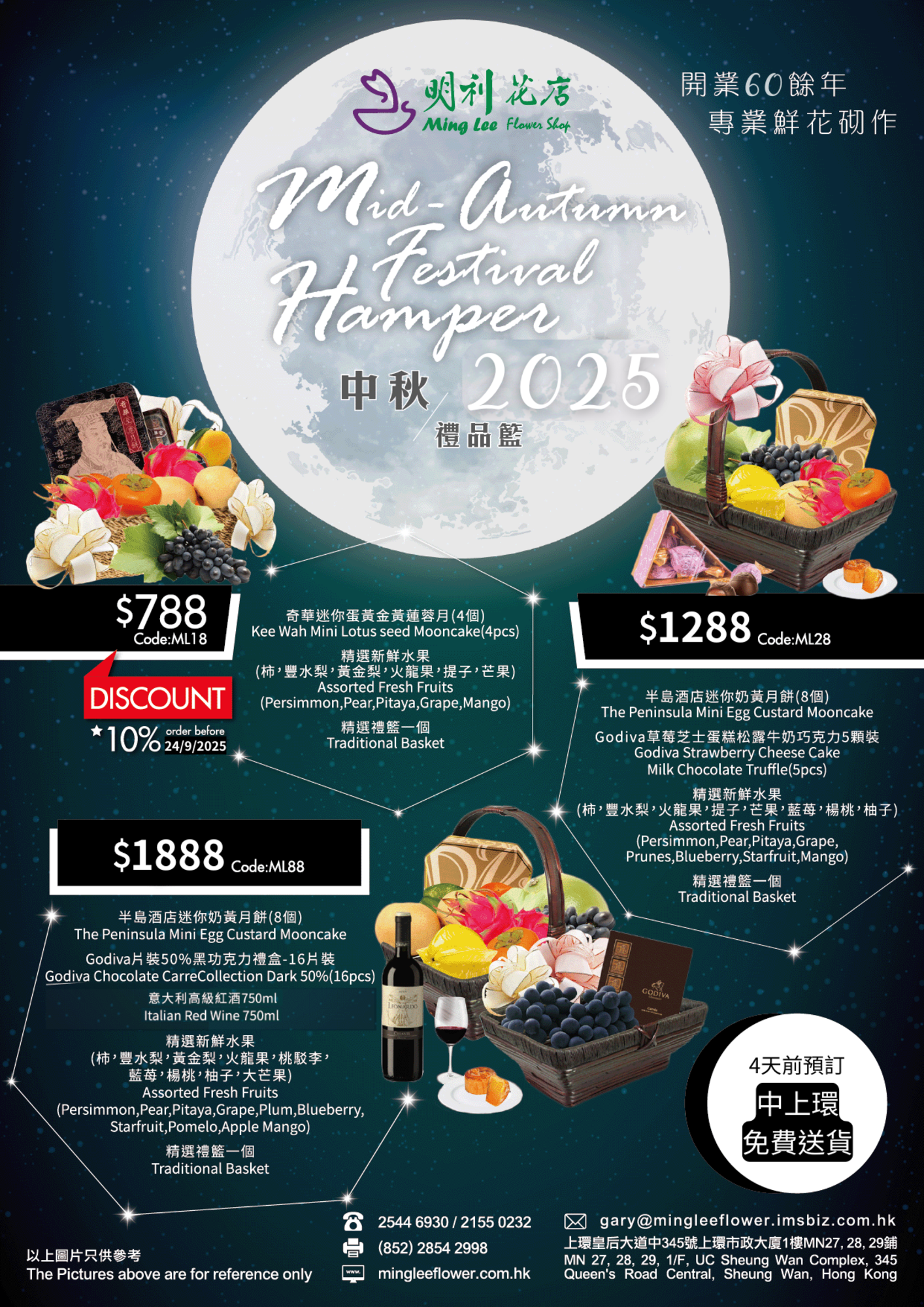 Ming Lee Flower Shop is now moved to MN27, 28, 29, 1/F., UC Sheung Wan Complex, 345 Queen Road Central, Sheung Wan, Hong Kong. We have been providing quality and professional floral products to our customers since 1958. With over 50 years of experience, we specialized in conveying exquisite messages with flowers, especially when they are styled exquisitely in bouquets.